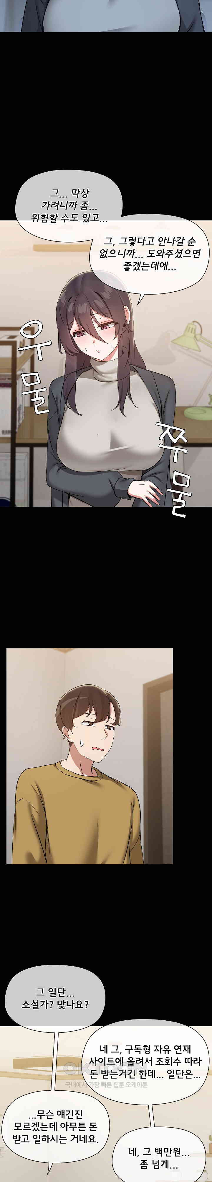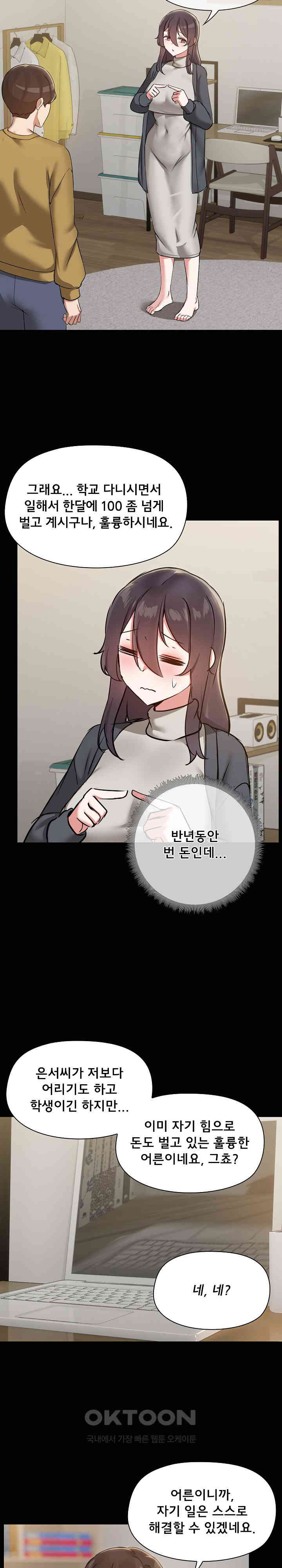 Bathroom Intercourse, Big Breasts, Fake Boyfriend, Fake Relationship, Fellatio/Blowjob, First-Time Intercourse, Full Color, Kiss/es, Lingerie/s, Male Prostitute/s, Missionary Position, Misunderstanding/s, Money Problems, Multiple Sexual Partners, Nakadashi / Creampie, Nudity, Sex, Share House, Shy Character/s, Webtoon