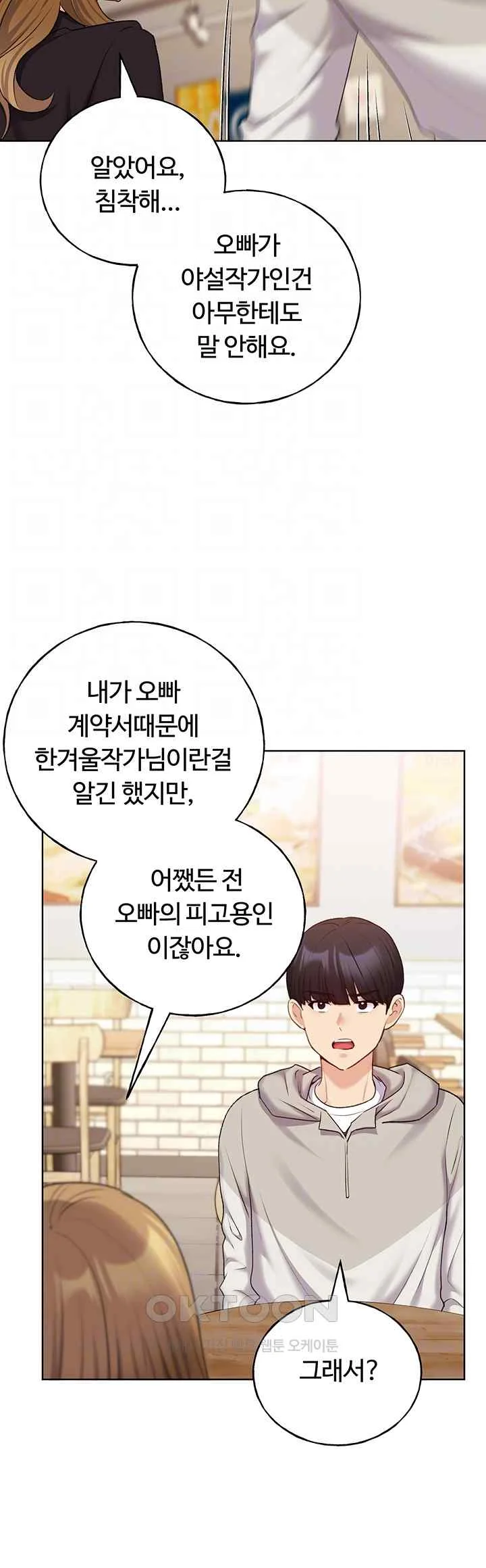 Anal Intercourse, Big Breasts, Big Penis, Blackmail, Borderline H, Caught in the Act, Cunnilingus, Deepthroat, Doggy Style, Double/Multiple Penetration, Erotic Fantasy/ies, Fellatio/Blowjob, Fetish/es, Fingering, First-Time Intercourse, Horny Female Lead, Love Triangle/s, Masochistic Female Lead, Masturbation, Rough Sex, Sadomasochism, Sex Toy/s, South Korea, Submissive Female Lead, University/College, Writer Protagonist