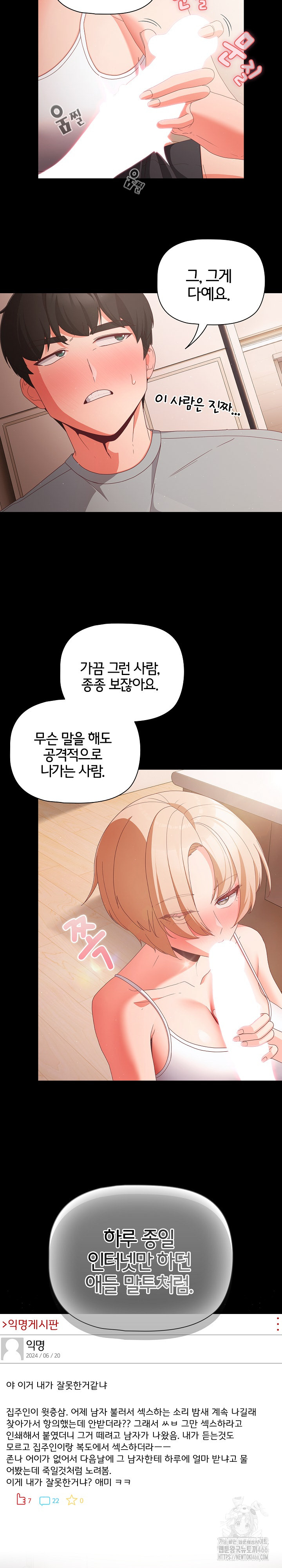 21st Century, Adult Protagonist, Annoying Character/s, Annoying Male Lead, Bathroom Intercourse, Big Ass, Big Breasts, Big Penis, Blonde-Haired Character/s, Caught in the Act, Clothed Intercourse, Cowgirl Position, Cum Leaking, Cum Swallow, Cunnilingus, Denial, Doggy Style, Embarrassing Situation/s, Exhibitionism, Fingering, Freeloader/s, French Kissing, Full Color, Groping, Handjob, Horny Female Character/s, Horny Male Lead, Hot-Blooded Male Lead, Inexperienced Female Lead, Kinky, Kiss/es, Landlord/Landlady, Masturbation, Missionary Position, Modern City, Modern Era, Multiple Stories, Muscular Male Lead, Muscular Protagonist, Nipple Play, Nipple Sucking, Nudity, Paizuri, Policeman, Policewoman, Restaurant, Rough Sex, Sex, Sex Friend/s, Sexual Fantasy/ies, Sexual Teasing, Sexually Active Male Lead, Sexually Active Protagonist, Sexually Insatiable Female Lead, Sexually Insatiable Male Lead, Spanking, Suit/s, Voyeurism, Webtoon, Wiretapping