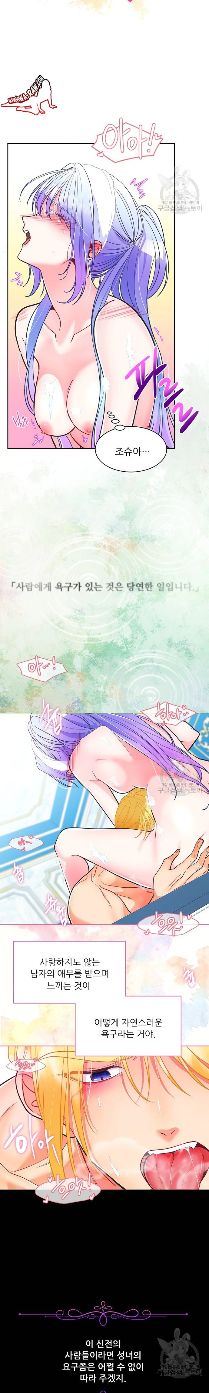 Based on a Novel, Blue-Haired Protagonist, Body Sharing, Dubious Consent, Fantasy World, Full Color, Goddess/es, Innocent Female Lead, Knight Male Lead, Knight/s, Long-Haired Male Character/s, Lust, Magic, Multiple Persons In Same Body, Multiple Sexual Partners, Naive Female Lead, Personality Change/s, Possession, Priest/s, Purple/Violet-Eyed Protagonist, Rape, Reverse Harem, Saint/Saintess, Seduction, Sex Addict/s, Sexual Assault, Temple/s, Webtoon